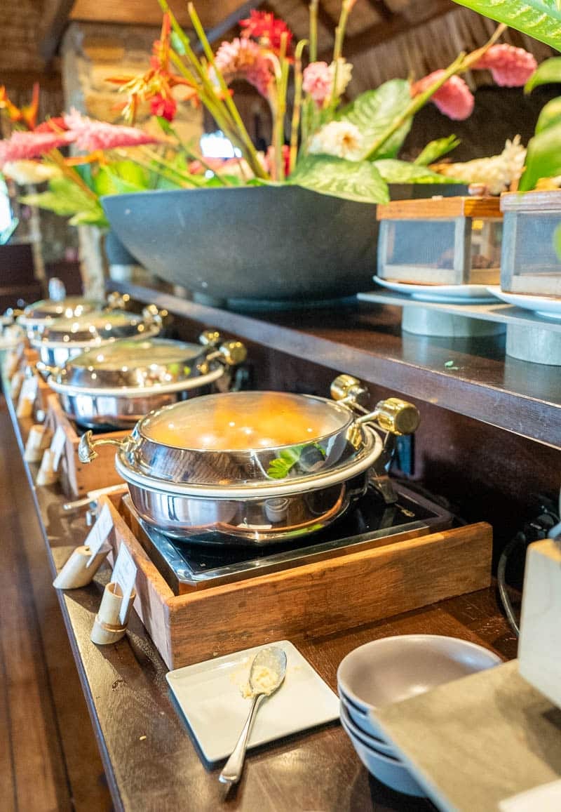 Hawaiki Nui is the main restaurant on property. If you have a half-board package, this is the restaurant you will have access to. They service breakfast and dinner here and it’s situated on the second level above the lobby. For breakfast, they offer a good variety of foods including omelettes, pancakes, waffles, breads and local dishes. They have a variety of milk-alternative products such as coconut and almond as well.