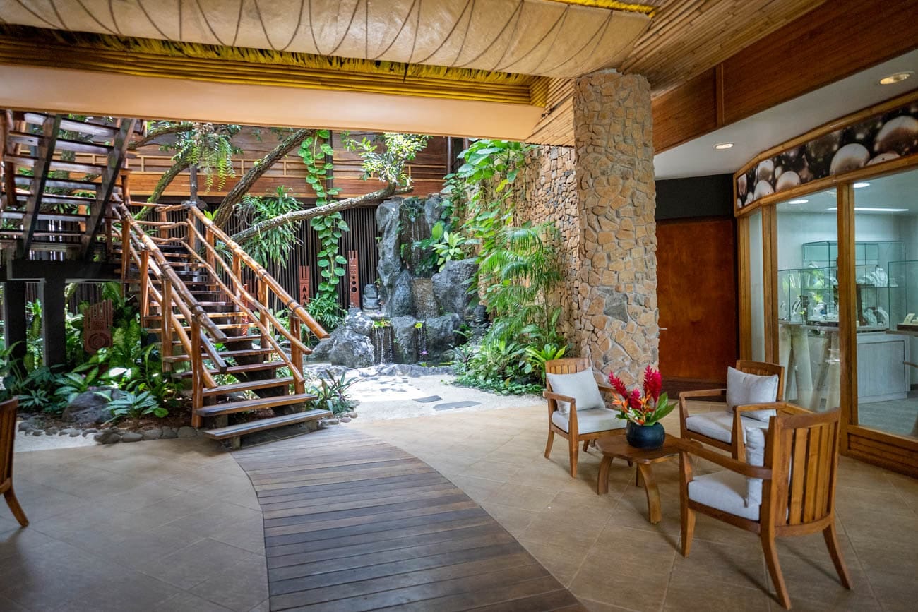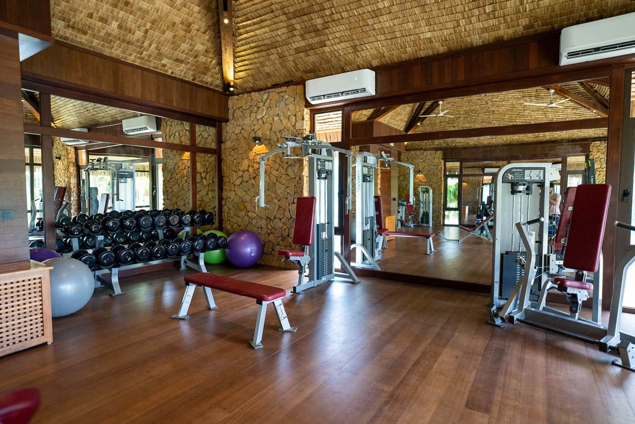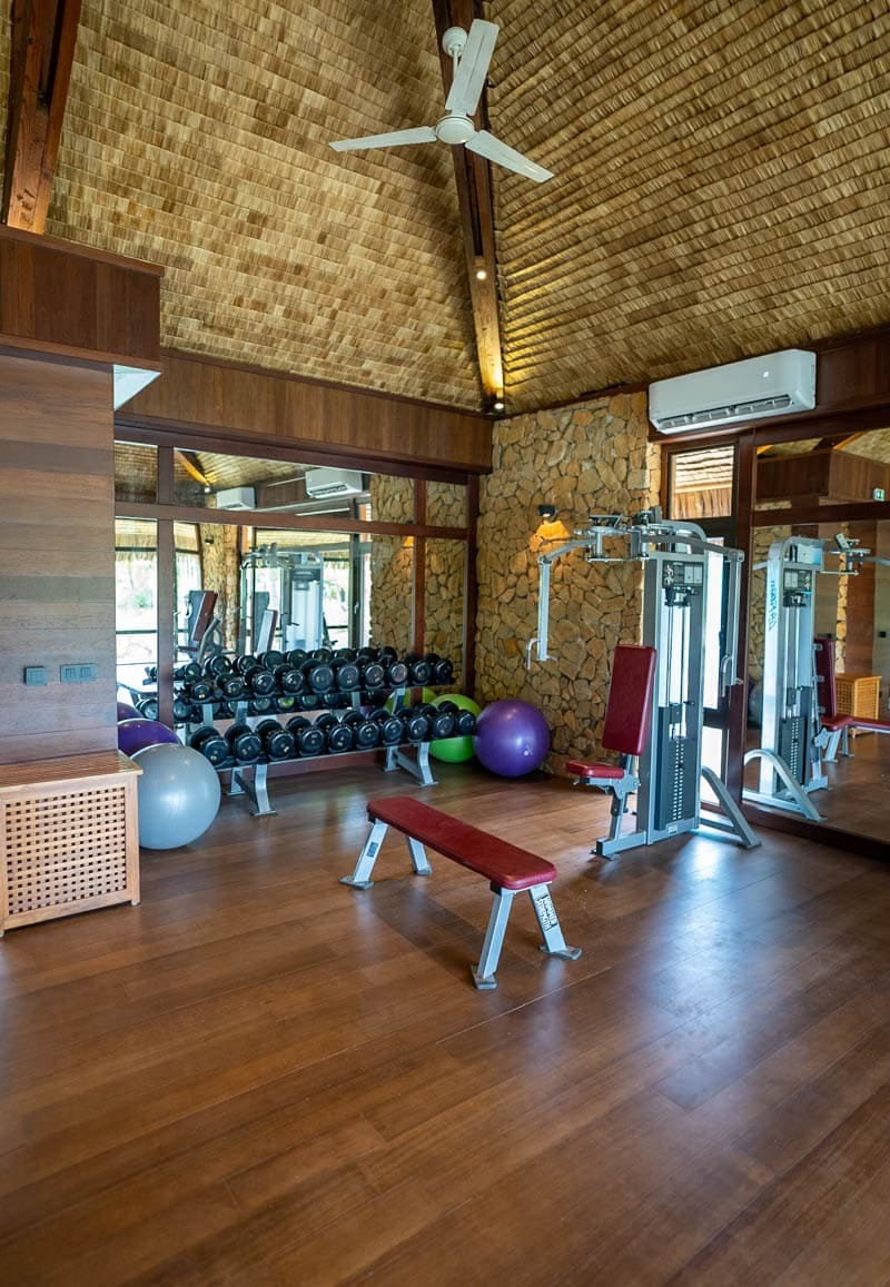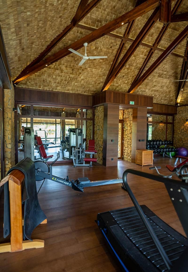 Le Tahaa has incredible amenities that really fit with the rustic vibe of the property. There is a beautiful beachfront pool and pool bar with an attached restaurant that we saw many guests lounging at throughout the day. There is a nice spa that offers massages over an inland pond at fairly reasonable rates. There is a fitness center with ample machines available to guests to use at any time of day and there are also two shops in the hotel.