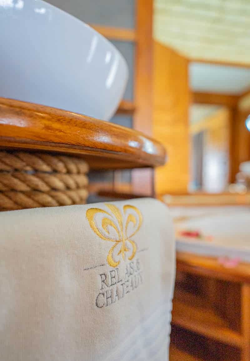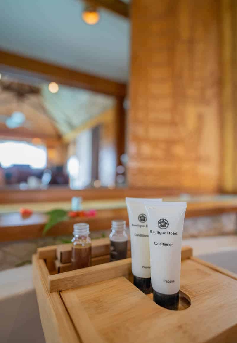 They feature their own products in the bathroom, including body oils, shampoos and body washes made of vanilla and the Tahitian flower, Tiare.