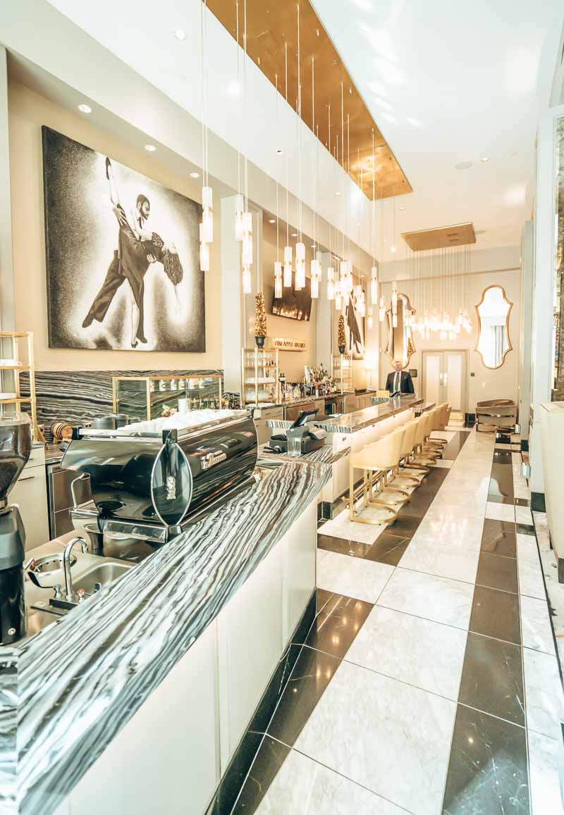 However, if you simply can’t leave the cozy lobby, they do serve small bites in the bar. We also enjoyed several cocktails at the bar and they were all excellent and trendy. Their wine selection is reasonably priced and delicious as well. The lobby bar is a great stop on your way out for dinner, so don’t miss a champagne cocktail there.