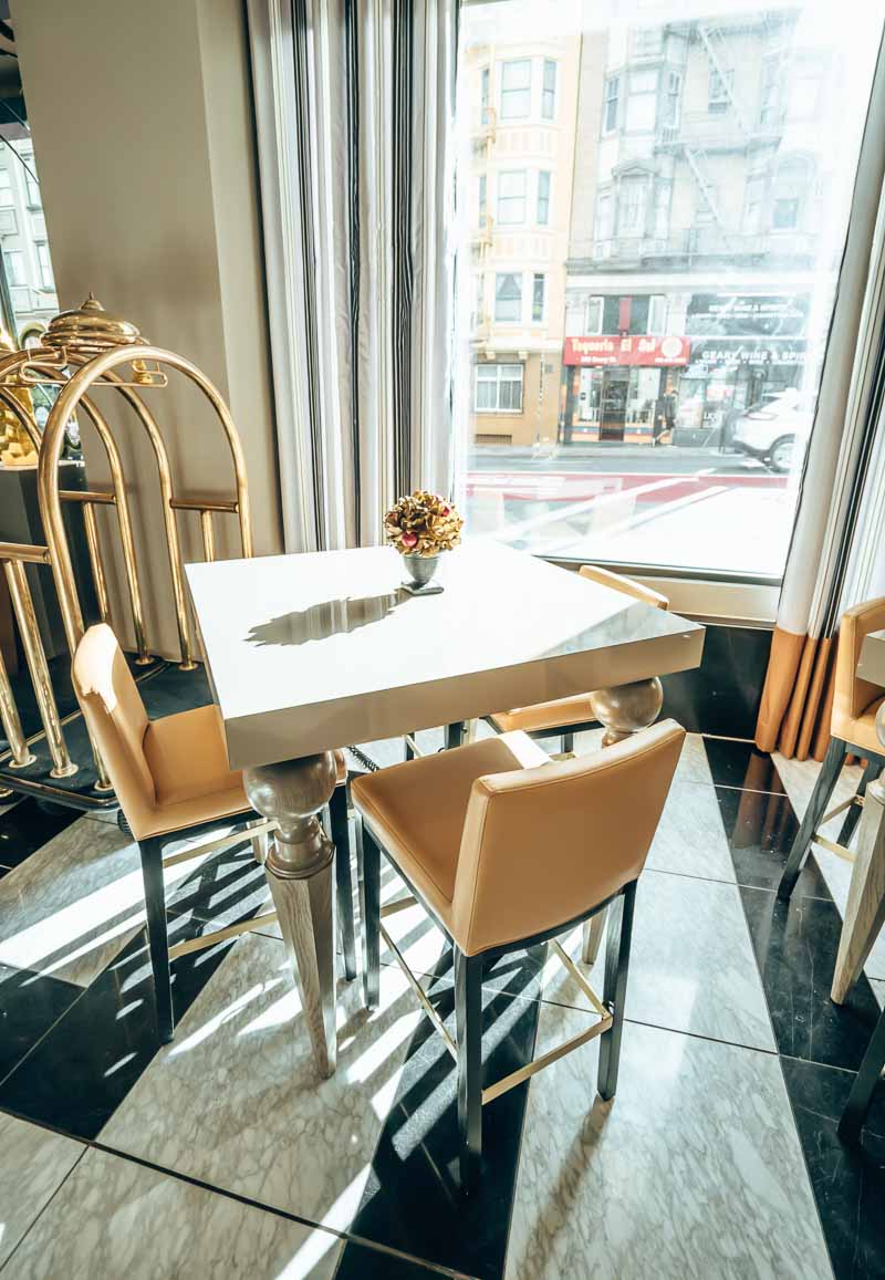 In terms of location, it’s about 2 blocks off the actual Union Square. While Union Square is a beautiful and clean area, the outskirts can get a little sketchy at night, which can be a bit unnerving if you’re not familiar with the area. This is true for all hotels in the neighborhood (including the big brands like Grand Hyatt and Marriott). Despite the somewhat sketchy nature of the area, some of the city’s best bars and restaurants are within steps of the front door, including my favorite: Bourbon & Branch. Union Square is one of the main shopping and tourism hubs of San Francisco and the classic cable cars pass by just outside, making for a lovely view.
