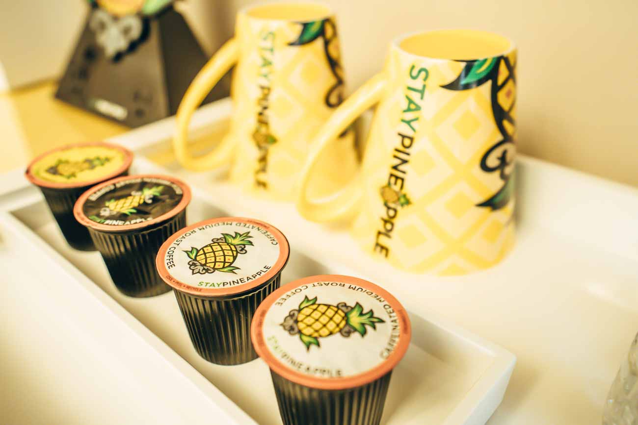 We loved the style at Staypineapple! Elegant, classy and modern, but still staying true to their quirky and fun brand. We loved all the custom amenities they had like the Keurig pods, mugs, robes and bedding. The lamps in the rooms were all beautiful and different, which makes you feel like your room is specifically designed for you. The lobby is like walking into a West Elm magazine and we loved that aspect of the brand. There’s nothing more disappointing than half-assed decor and Staypineapple just nailed it.