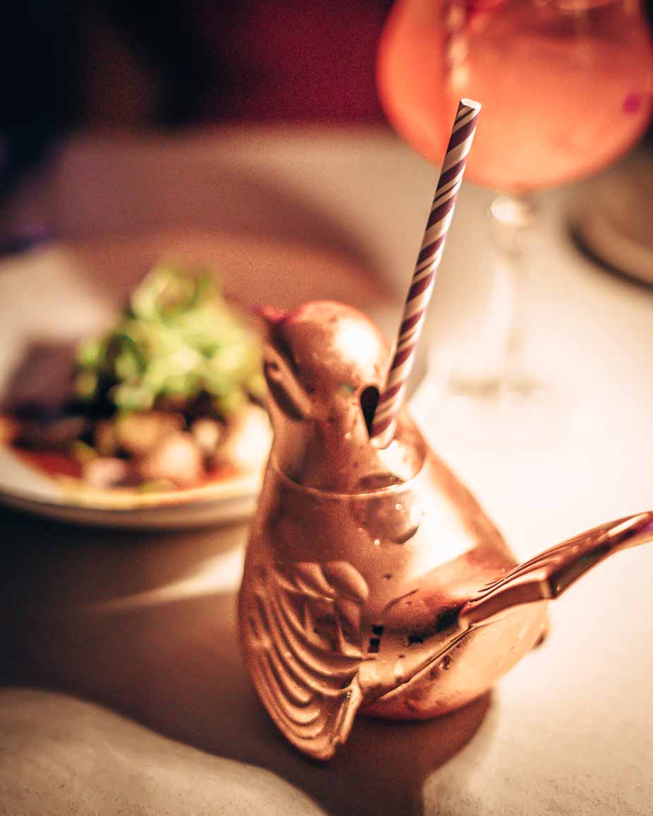 Juvia has, arguably, one of the best views in South Beach. Towering over Lincoln Road, the expansive ocean and boardwalk views are unbeatable. Juvia makes up the entire rooftop of the building with both indoor and outdoor spaces. We were seated outside next to the water feature (complete with a floating LED rubber duck) and with an incredible view. Chill music bumps from the DJ booth, but not loud enough to be bother. One cocktail in and it’s already the best sundowner you could ask for in Miami.